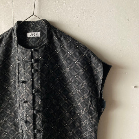 県立美術館で『ミニマル/コンセプチュアル』展を観た翌日、2022.5.23にかいさんと一緒にaliで求めた1940年代のフランス製デッドストック生地で仕立てたチャイナベストです。一度は高くて諦めたこの生地をかいさんの後押しもあってえいっと買った時のこと、ついこの間のことのように覚えています。