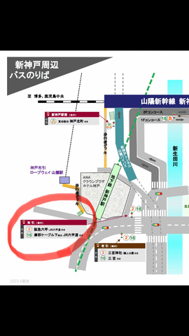 ②新幹線 新神戸駅からの最短ルートは神戸市バスです。2系統 阪急六甲行きに布引から乗って篠原本町2丁目で下車(約15〜20分くらい)、そこから徒歩で到着です。バス乗り場が少々分かりにくいのですが、写真の地図を参考にしてください。¥230で交通系ICカード利用の場合は乗る時と降りる時にピッ(タッチ)必要です。