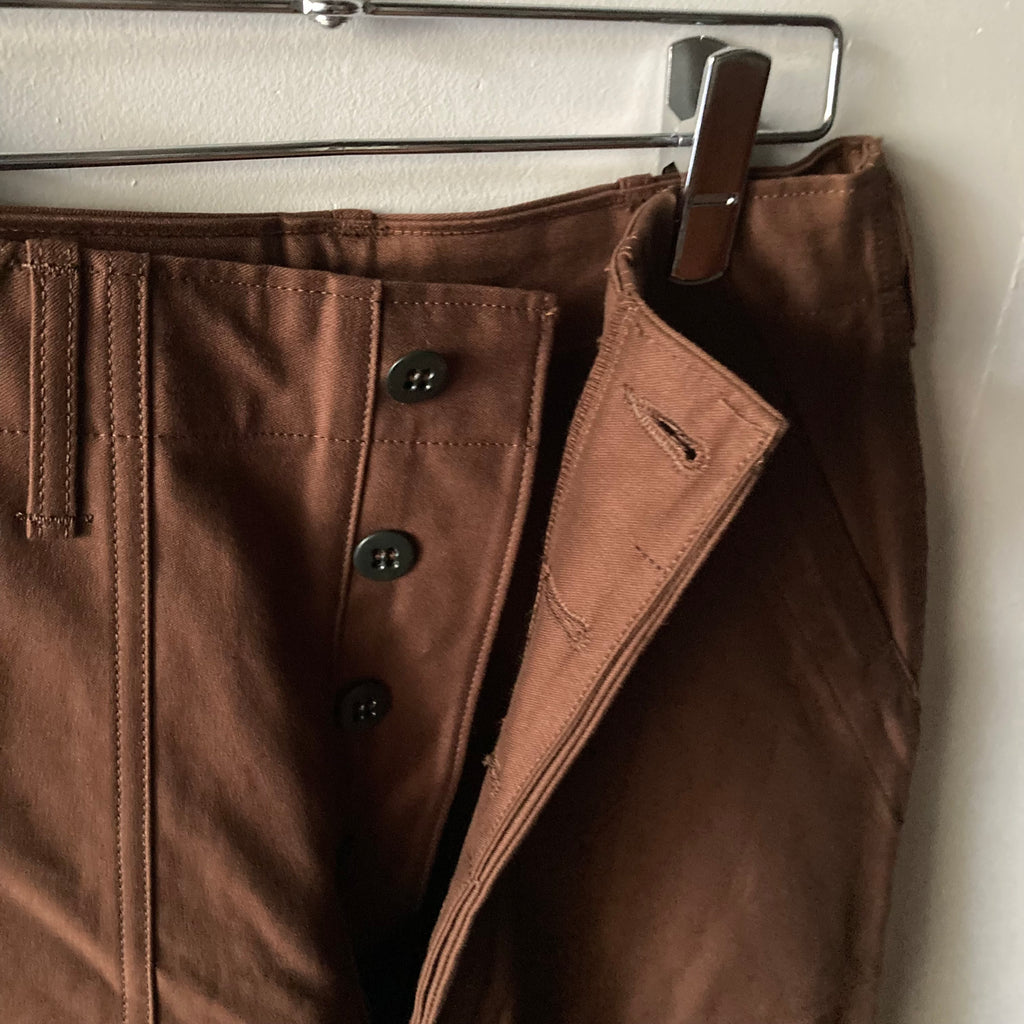 バックサテンのベイカーパンツ、TUKIの中でも少しサイズ感が大きい印象です。太めのシルエット、後ろポケットが大きく、ボタンがアクセントの1本。このバックサテン、厚すぎず薄すぎずの絶妙な生地で肌触りもよくノーストレスで穿けるので、私、惚れ込んでおります 笑 アジャスター部分を閉めると約5㎝ウエストが小さくなります。シンプルなんだけど何かちょっと違うんだよね、というやりすぎないおしゃれを求める方にぜひ穿いてほしいです。 美味しそうなチョコレートカラー🍫ピンク、グレー、えんじ、ライトブルー、ネイビーあたりを合わせると今年らしいカラーリングになるのではないかと思います。