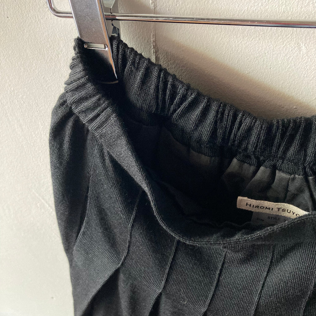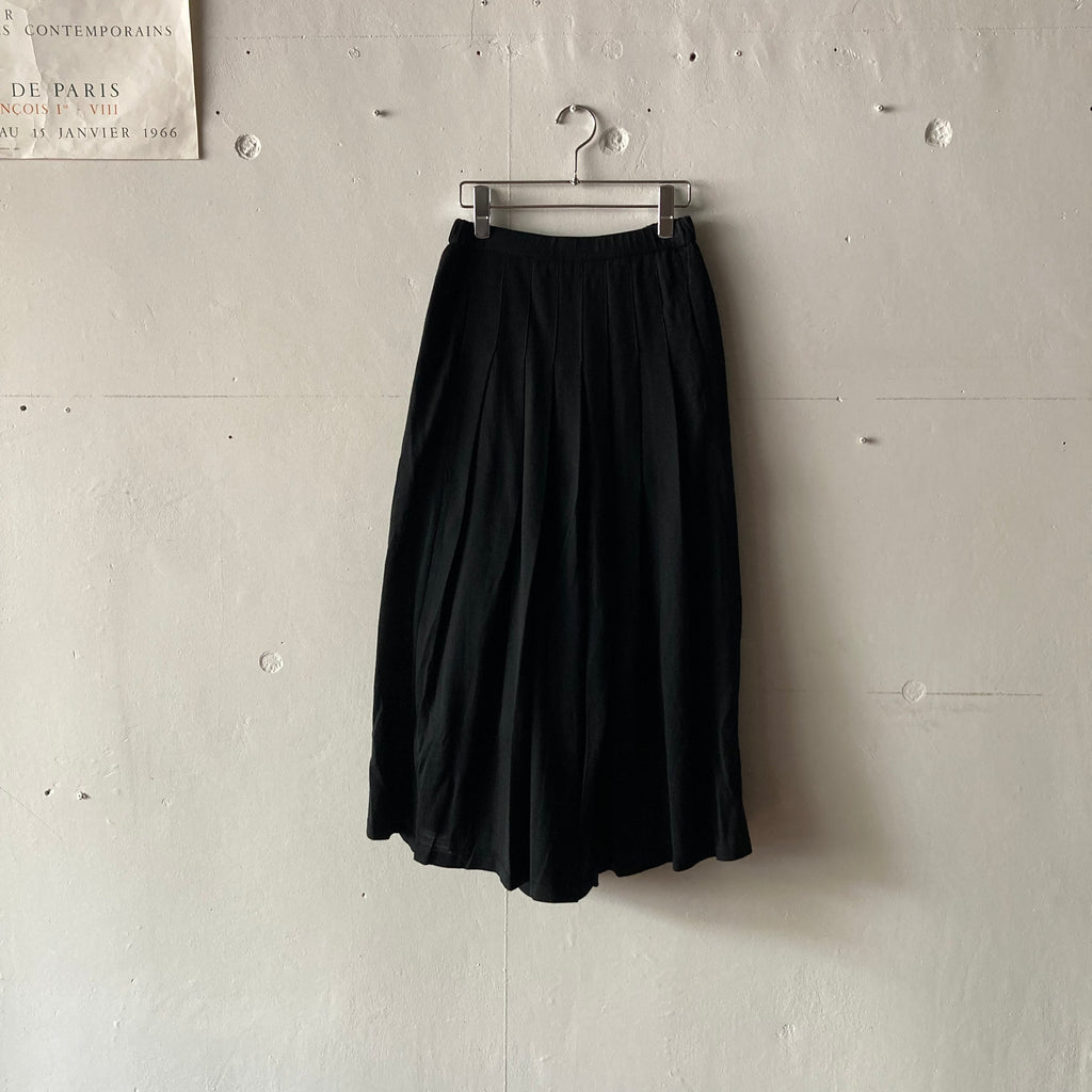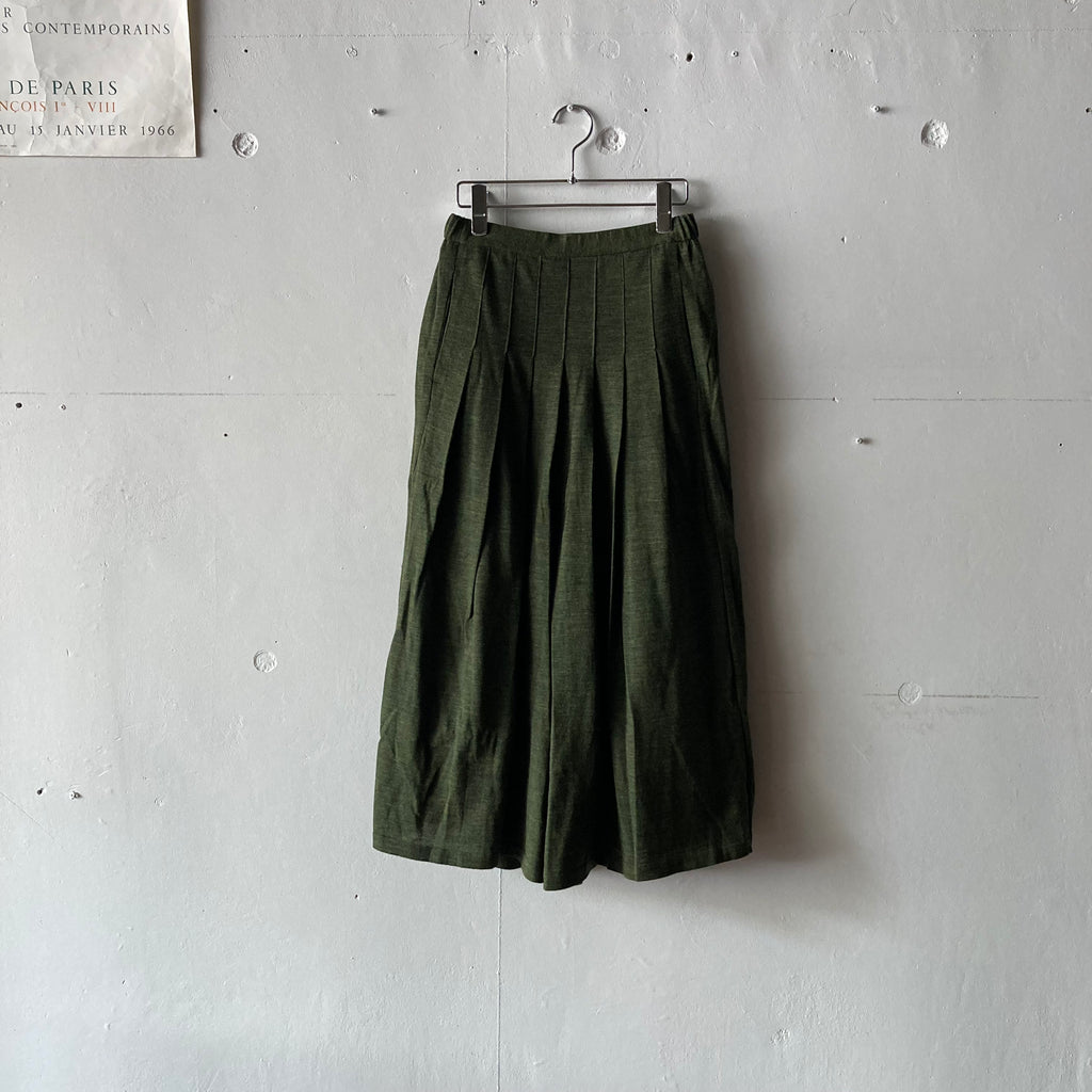 2022AW 記念すべき30回目のコレクション、今回も素晴らしい手仕事のニットたち。どれだけたくさんの人の手を介して作られたのかと思うと、手に取るだけでため息と共に背筋が伸びますね。こちらはハイゲージのニットで作られたハカマパンツです。ウエスト総ゴム、前見頃に美しいタック、裏地も付いていますので足捌きも快適です。パンツですがロングスカートのようなシルエットにも見え、どんなトップスも受け止めてくれる優秀ですごく使える1枚です。両サイドポケットあり。