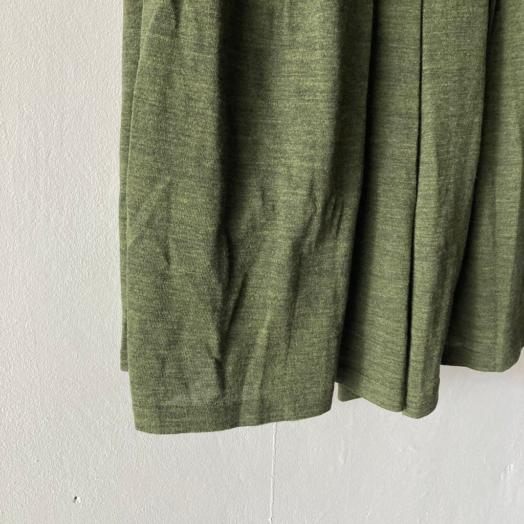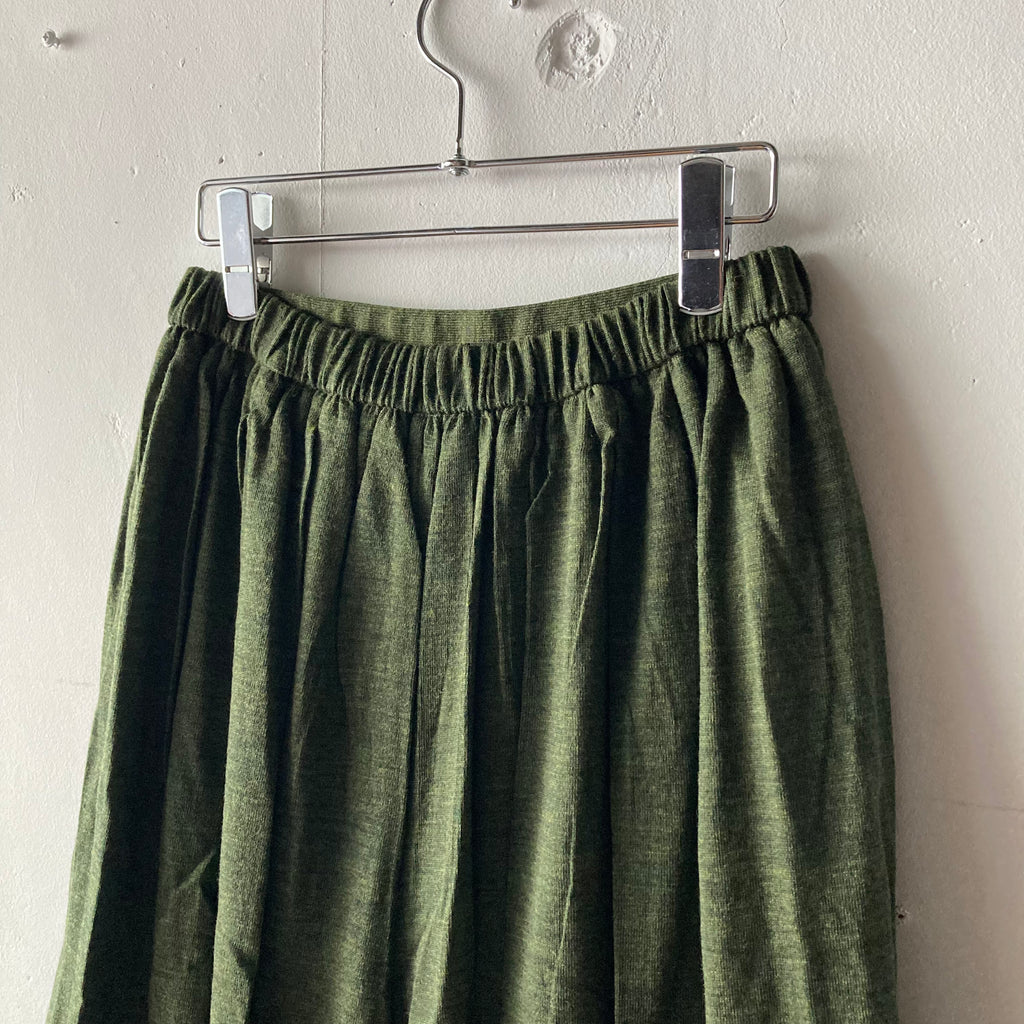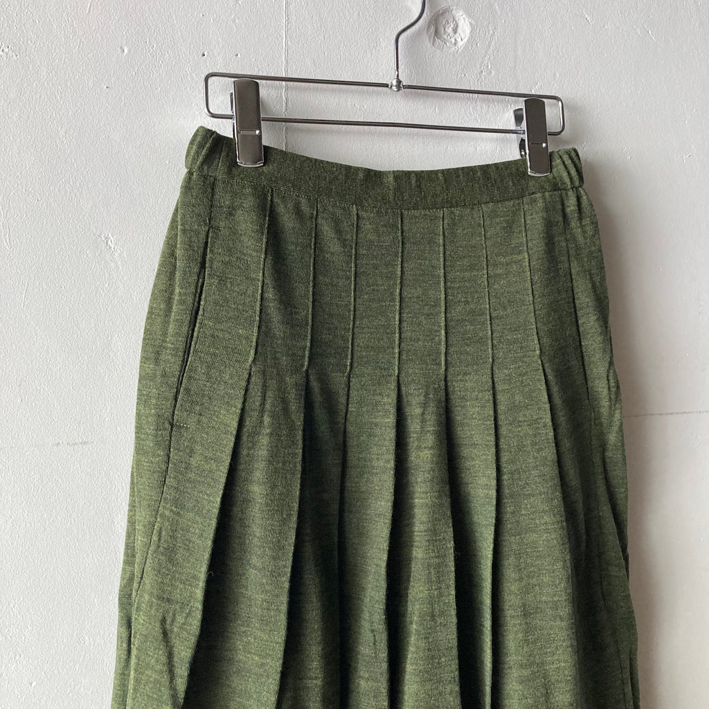 2022AW 記念すべき30回目のコレクション、今回も素晴らしい手仕事のニットたち。どれだけたくさんの人の手を介して作られたのかと思うと、手に取るだけでため息と共に背筋が伸びますね。こちらはハイゲージのニットで作られたハカマパンツです。ウエスト総ゴム、前見頃に美しいタック、裏地も付いていますので足捌きも快適です。パンツですがロングスカートのようなシルエットにも見え、どんなトップスも受け止めてくれる優秀ですごく使える1枚です。両サイドポケットあり。