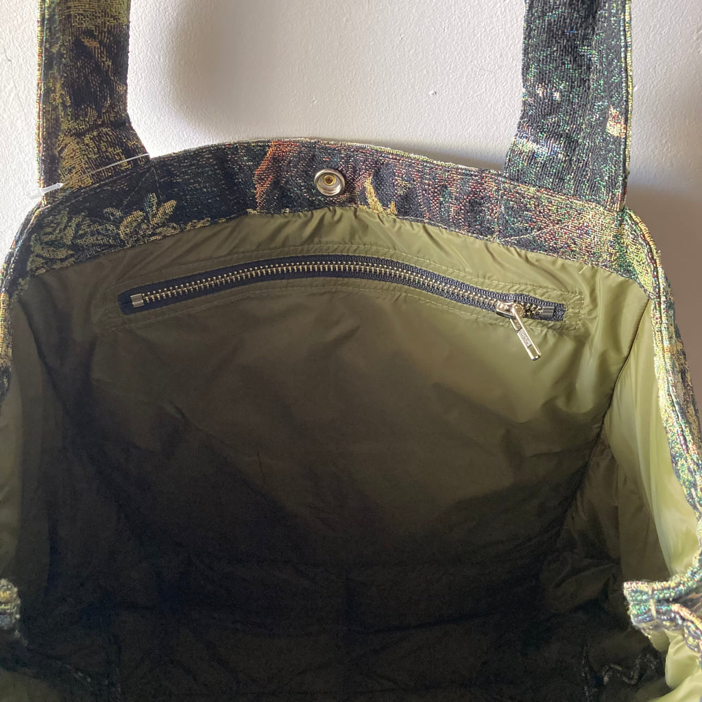 アメリカ🇺🇸のCrecent Down Worksとのコラボ、ダウンバッグです。その昔、R氏が幼稚園児の時にここの黄色いダウンベストを着せていたのですが、ほぼ毎日着用していた(子供は正直なのでノーストレスのものが好き)のと、洗濯にも耐え得る品質にさすがだなと思っていたので、このコラボは間違いないだろうという確信のもと選びました。しっかり大きさもあり軽くフカフカ(枕にもなる?かも)インパクトのあるゴブラン織りの🦌がかっこいい〜 ずっと使えますね。内ポケット3つあり。アメリカ製