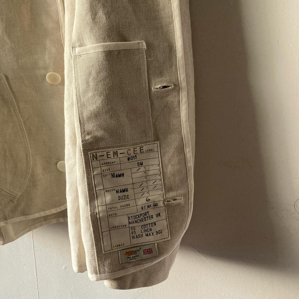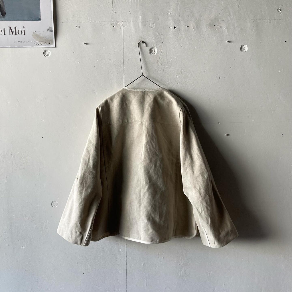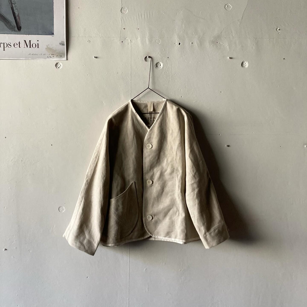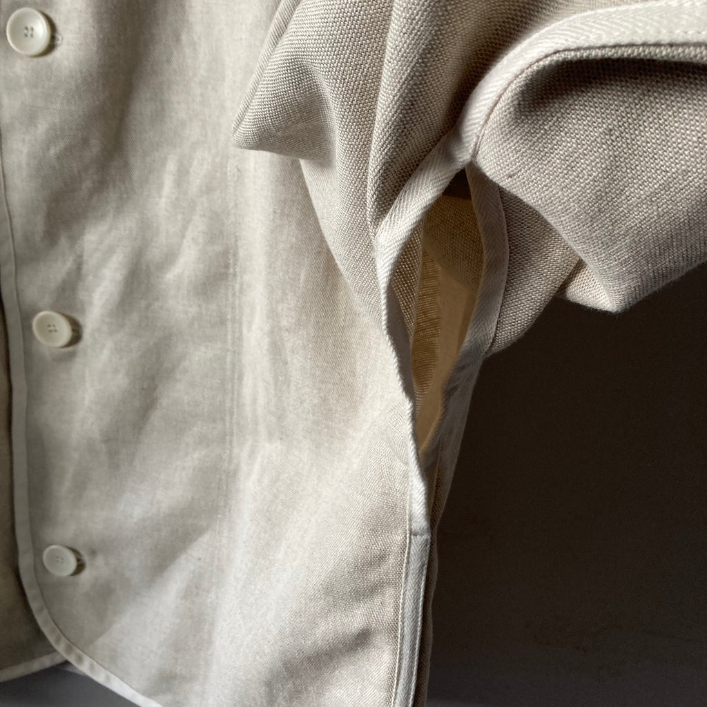 名前の通り、曲線を多用したパターンでポケットや脇下の開きなどに特徴があり、しっかりとした綿麻素材(150年以上続くイギリスのブリスベイン・モスのファブリックを使用)を使用。ゆるっとした感じがかわいい。内側は綿テープを使って丁寧に縫製されています。作り手の名前、製作時間、いつ作られたかなどの情報をまとめて縫い付けてあるのも💓丸みのある大きなポケット、ボタンもかわいいですね。セットアップになるカーブパンツもございます。外ポケット2つ、内ポケット1つあり。イギリス製