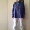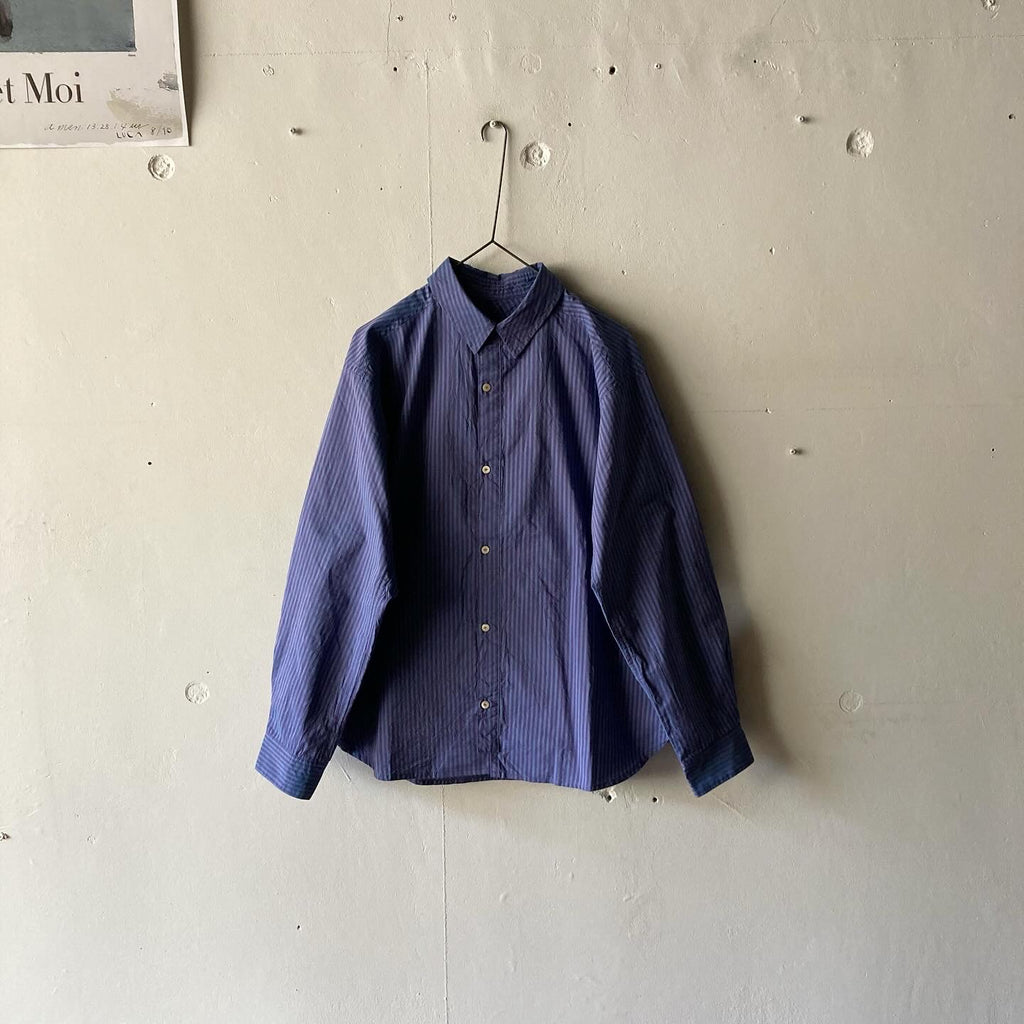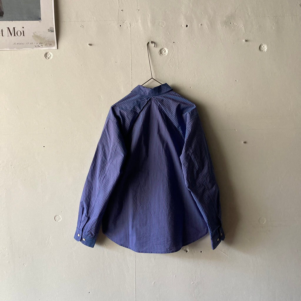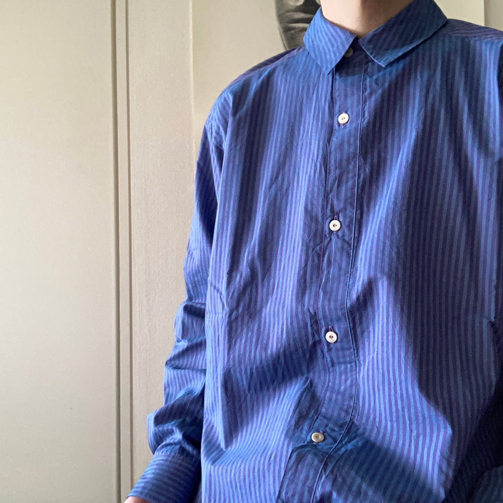 オーガニックコットン生地で仕立てられたキャンディストライプのフリーアームシャツです。玉虫のような、光の当たり具合で色の見え方が異なる柔らかで肌馴染みのよい魅力的なストライプ地。特徴的なバックスタイルかつノーストレスで着ることができる機能性も兼ね備えたシャツです。ポスタルコのものづくりって今までの常識を疑問に思うところからスタートしているものが多いので、すごく今の時代に合っているなぁと思います。