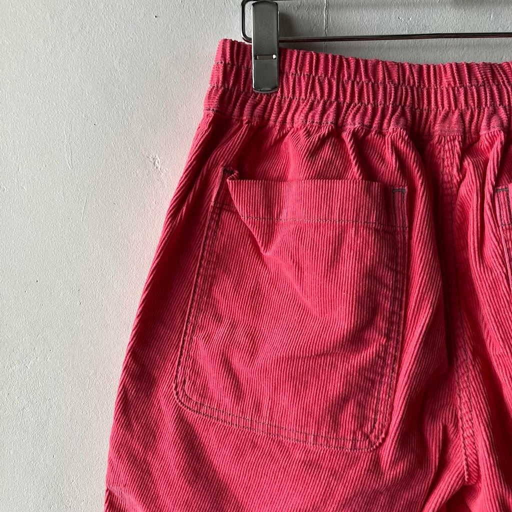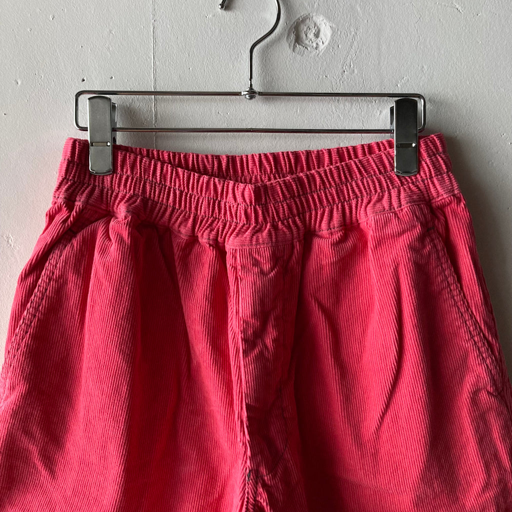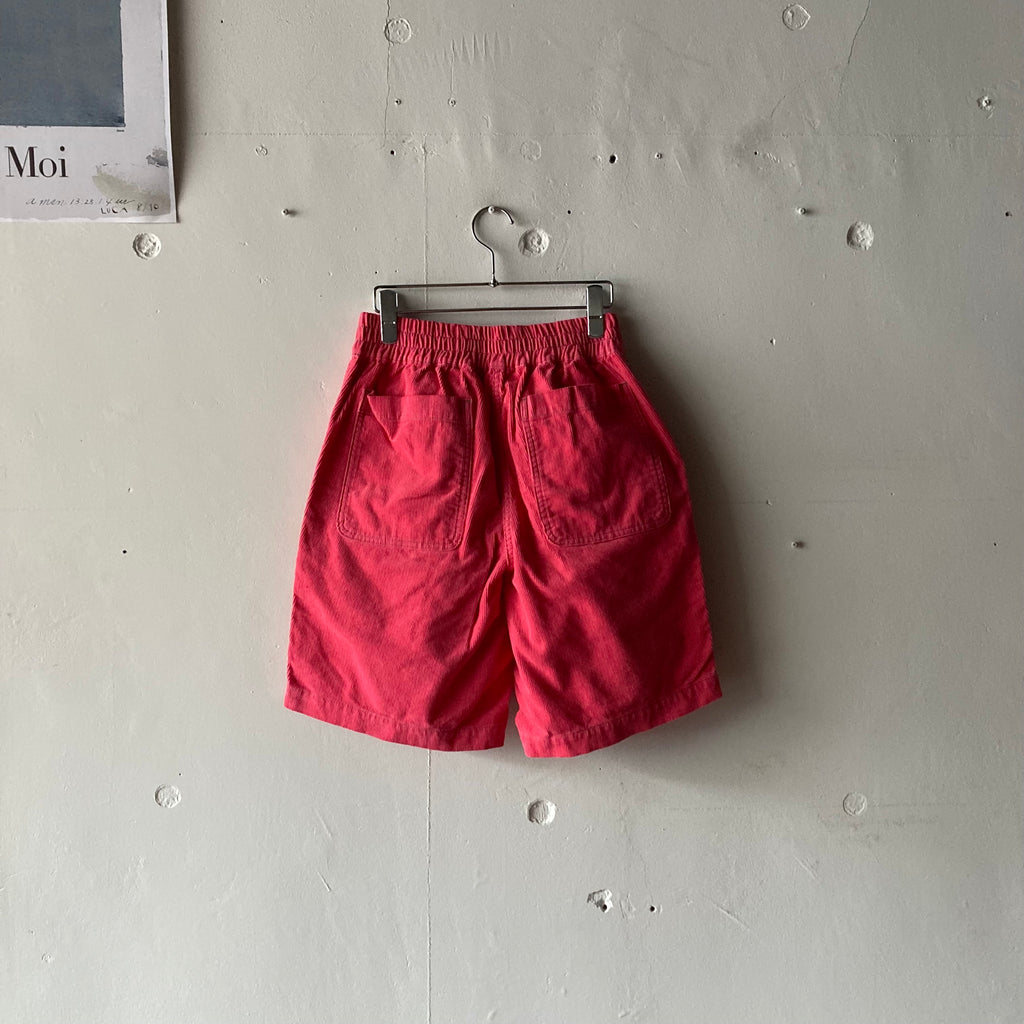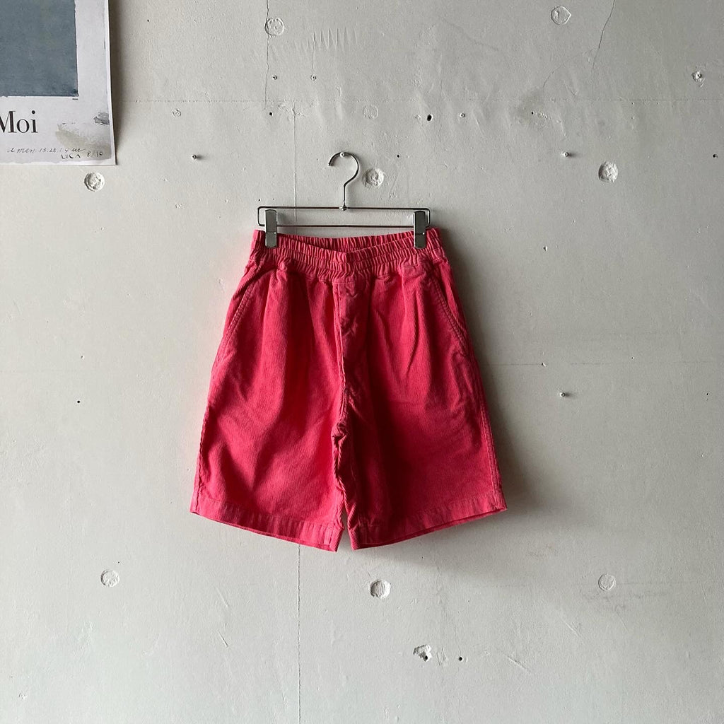 細畝コーデュロイ・後染め加工を施されたボクサーショーツです。ウエストはゴムと紐なので、好みのボリュームや丈感をお選びください。ずいぶんと前に担当してくださっていた男性の美容師さんがピンクのショーツに白シャツだったのがずーっと頭に残っていて(ピンクパンサー期ね)ぜひ男性にもお試しいただきたいなぁ〜の1本です。