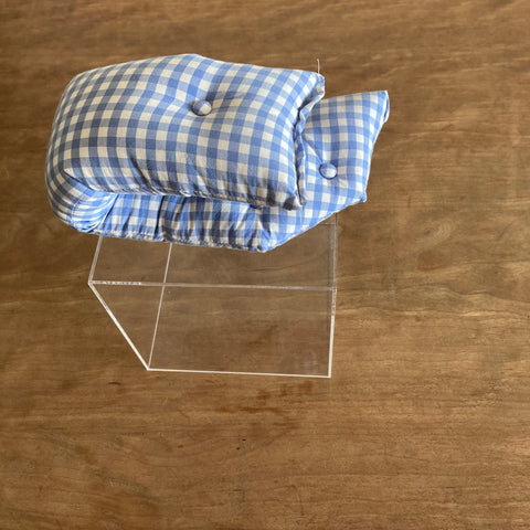 そんな猛暑の中ではありますが、8/24(土)からKAIのデザイナー、甲斐ひろみさんの展示『AT LUCA』が始まります。かいさんの作る洋服が好きな方はたくさんいらっしゃると思いますが、今回は一歩踏み込んだ世界観を観ていただきたく、手仕事による巾着や洋服、クッションなどの特別な布作品、そして特筆すべきはオブジェ、がLUCAに並びます。このオブジェなのですが、数年前かいさんのアトリエで初めてみたときに「何だこれ?」と怪しいほどに凝視。実用性はないけれど、ただただ愛おしくて、あぁかいさんはこういうものも作ることができる人なんだ、と心を持っていかれました。その後、新しい拠点としてオープンされたアトリエ兼ショップ(昨年惜しまれながらクローズしました)の棚や壁にも伺うたびに、かいさんの作るオブジェが本当に絶妙な位置に絶妙な空気を伴って鎮座していたのです。ここにあるのが一番素敵だとは分かっていても、ほ、ほしい…えっ、売ってるんですか?買います!…そうして私の手元に最初にやって来たのが写真のギンガムチェックのオブジェです。ギュッと綿が詰まっていて共布のくるみボタンがアクセントになりキュッと曲がっている何とも愛らしい形。これは何ですか?という問いに明確な答えはないけれど(答えを求めるのが野暮)見るたびにいいなぁ、好きだなぁと思います。私にとって心の栄養剤みたいなもの。そんな私の大好きなオブジェも今回の展示で並びます。洋服を作るかいさんだけでなく、こういう作品を作り出すことができる、かいさんの新たな側面をこの展示で見てほしいし知ってもらえたらいいな、と思います。そしてかいさんの作り出す空間を含めて、全てを隅から隅までお楽しみいただきたいです。暑い中ではありますが、どうぞ足をお運びください。(なお今回はオンラインでの作品の販売はありません。ポスターを除く全ての作品は会期終了後のお渡しとなります。)