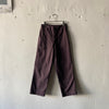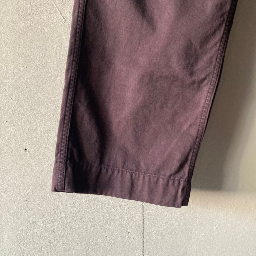 新型、ツールポケットを右脇に配したシンプルで美しいシルエットのパンツです。ほんの少しだけ起毛したコットンに後染め加工してあります。秋らしいニュアンスのある落ち着いたパープルに、さて何色を合わせましょうか?コインポケット1つ、両サイド、後ろポケット1つあり。