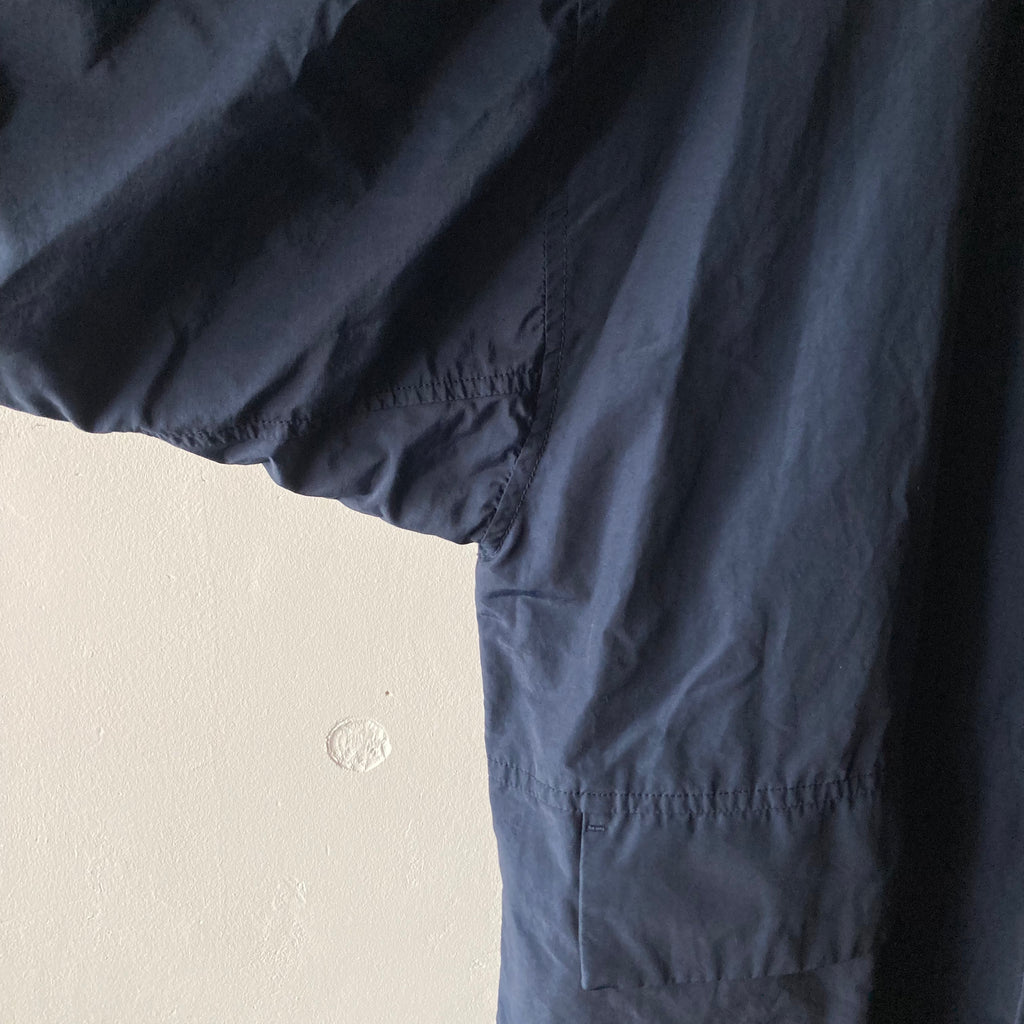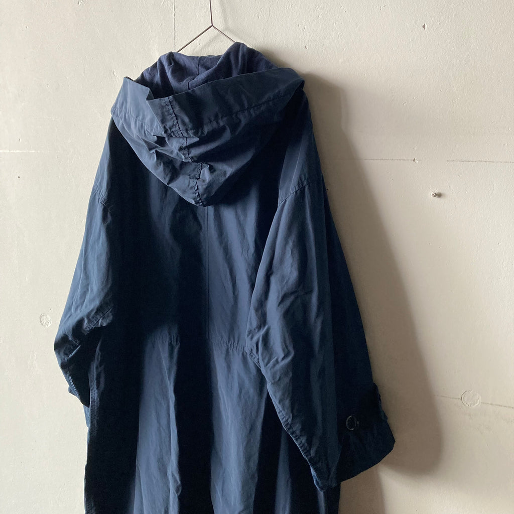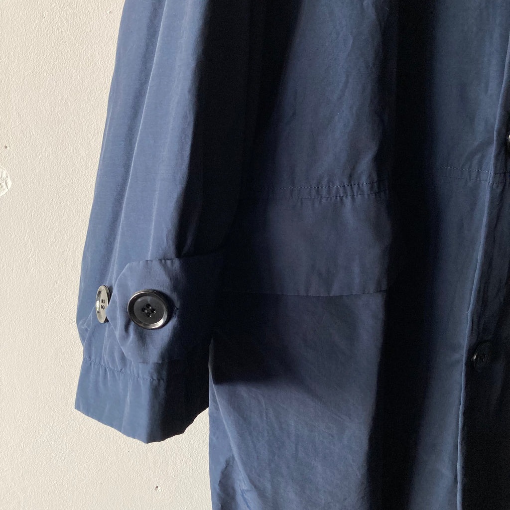 コットンポリエステルのウェザークロスにコットンジャージの総裏が付いた軽いコクーンシルエットのコートです。フードからチラリと覗く裏地、大きなボタンなど、シンプルさの中にぎゅっとこだわりが詰まった1着です。袖が長い場合は折り返して裏地を見せてもいいですし、付属のベルト部分をボタンでぎゅっと絞っても。セットアップになるゴムパンツもございます。