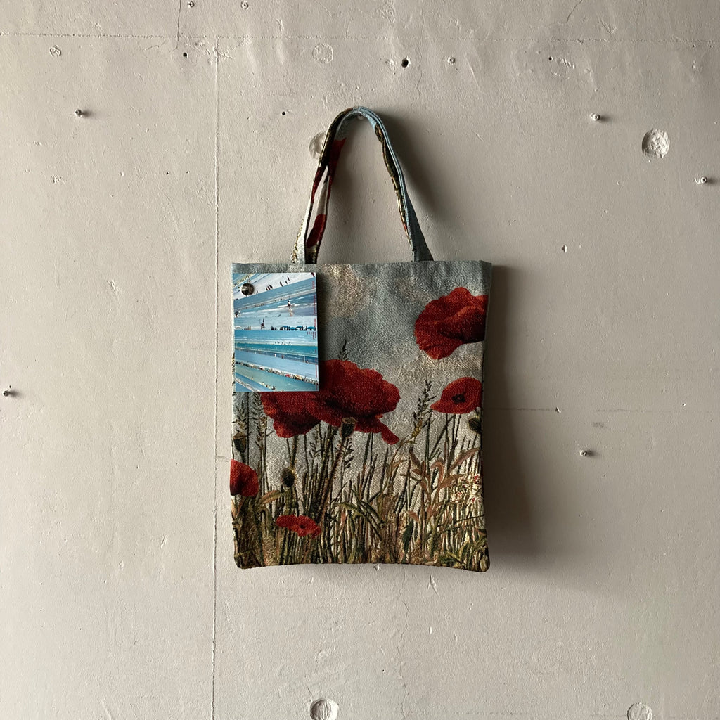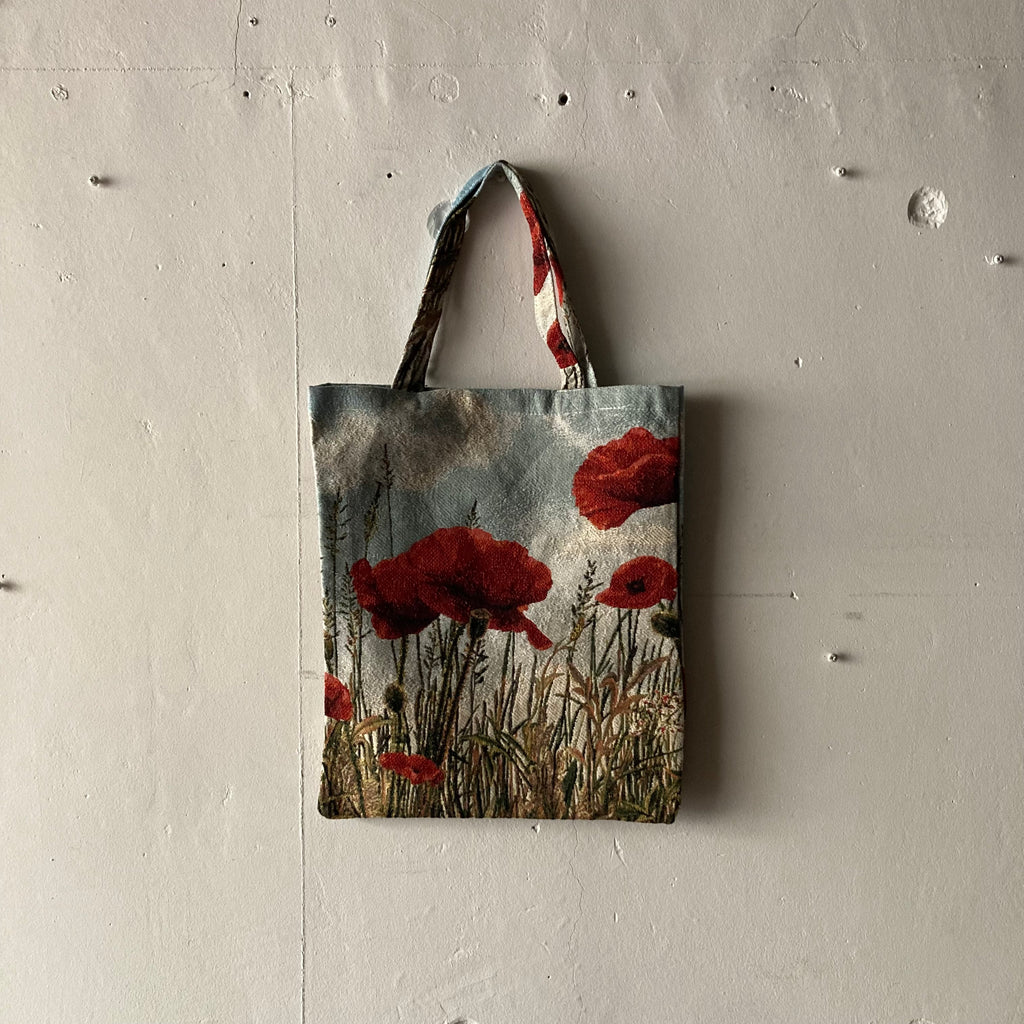 ゴブラン織りのバッグです。ポピーの大胆な構図としまうま🦓が目を引くお馴染みの動物シリーズの2種類です。柄により織りの密度が異なり、ポピー柄はしっかりめ、サファリ柄は柔らかい質感です。普段のコーディネートにさりげなく取り入れるとBLESSらしさが漂ってアップデートされますよ。ドイツ製🇩🇪