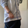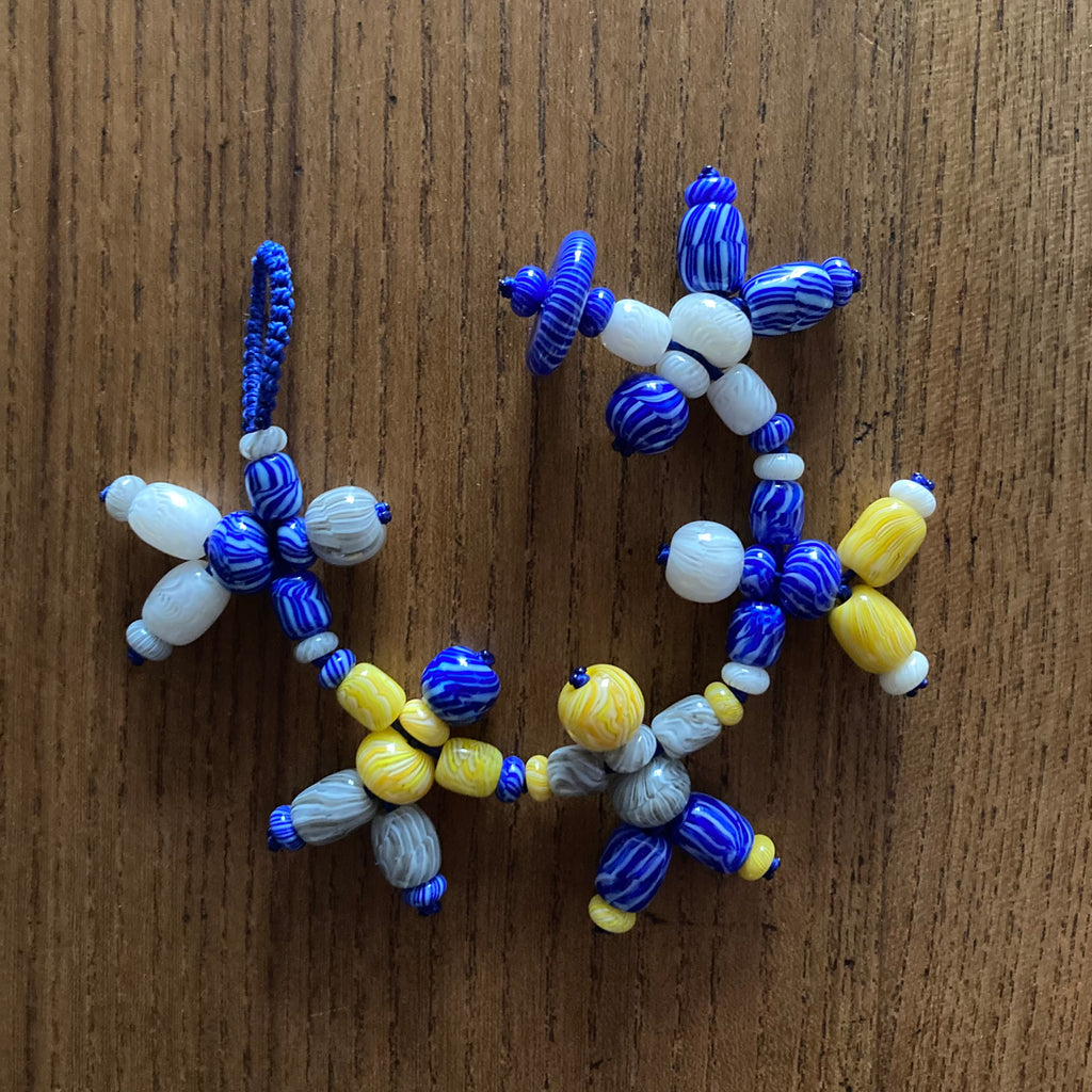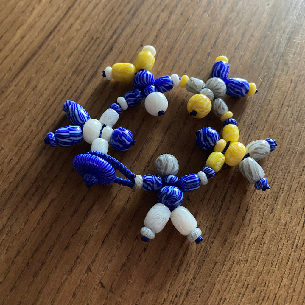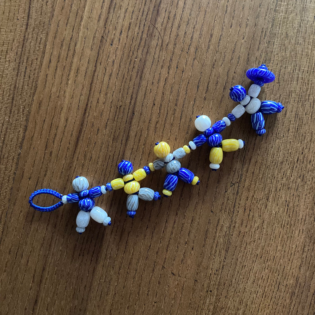「LULI LAMPWORK(ルリ ランプワーク)」のジュエリーより、ヒナ ブレスレットです。古来からあるとんぼ玉作りの技術によって、全て手作業で作られており、複雑な文様は唯一無二で見入ってしまう美しさ。このブレスレットはとんぼ玉の人形たちが手を繋いでいる何とも言えない可愛らしいデザインです。見ているだけで楽しい気持ちになりますね。今回リリースされた5色のとんぼ玉全てが使われているので、それぞれのカラーを見比べる楽しみも。とんぼ玉作りは1人の職人の手によって、リングの研磨やブレスレットなどの組み立ては2人のデザイナーの手によって行われています。金属アレルギーの方でも問題なく着用できます。素敵な巾着が付属します。