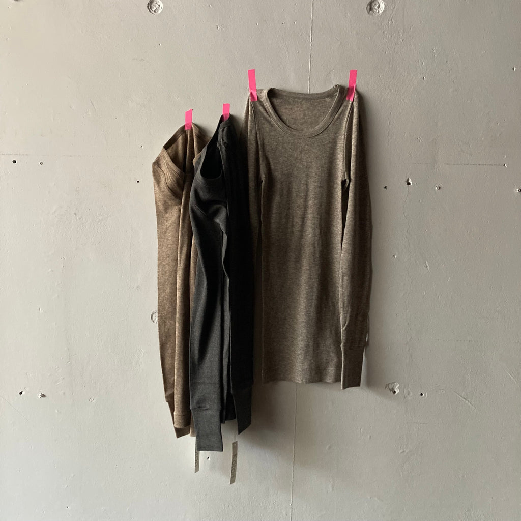 寒い時期に着るインナー問題。年齢と共になんか痒いとか息苦しいとかの理由でいつも着ていた某ブランドのものが厳しくなり、さてどうしたものか?と思っていたところ、これいいよと信頼する方に教えていただきました。それがこのKotonの丸筒テレコのTシャツです。捕らわれたエイリアン👽なみに細いのですが、びっくりするくらい伸びるので大丈夫。そして何よりスベスベの肌触りと温かさは、スーピマコットンとヤクの混紡糸の成せる技です。クルーネックの他、タートルネックもあります。これで寒くなっても安心!