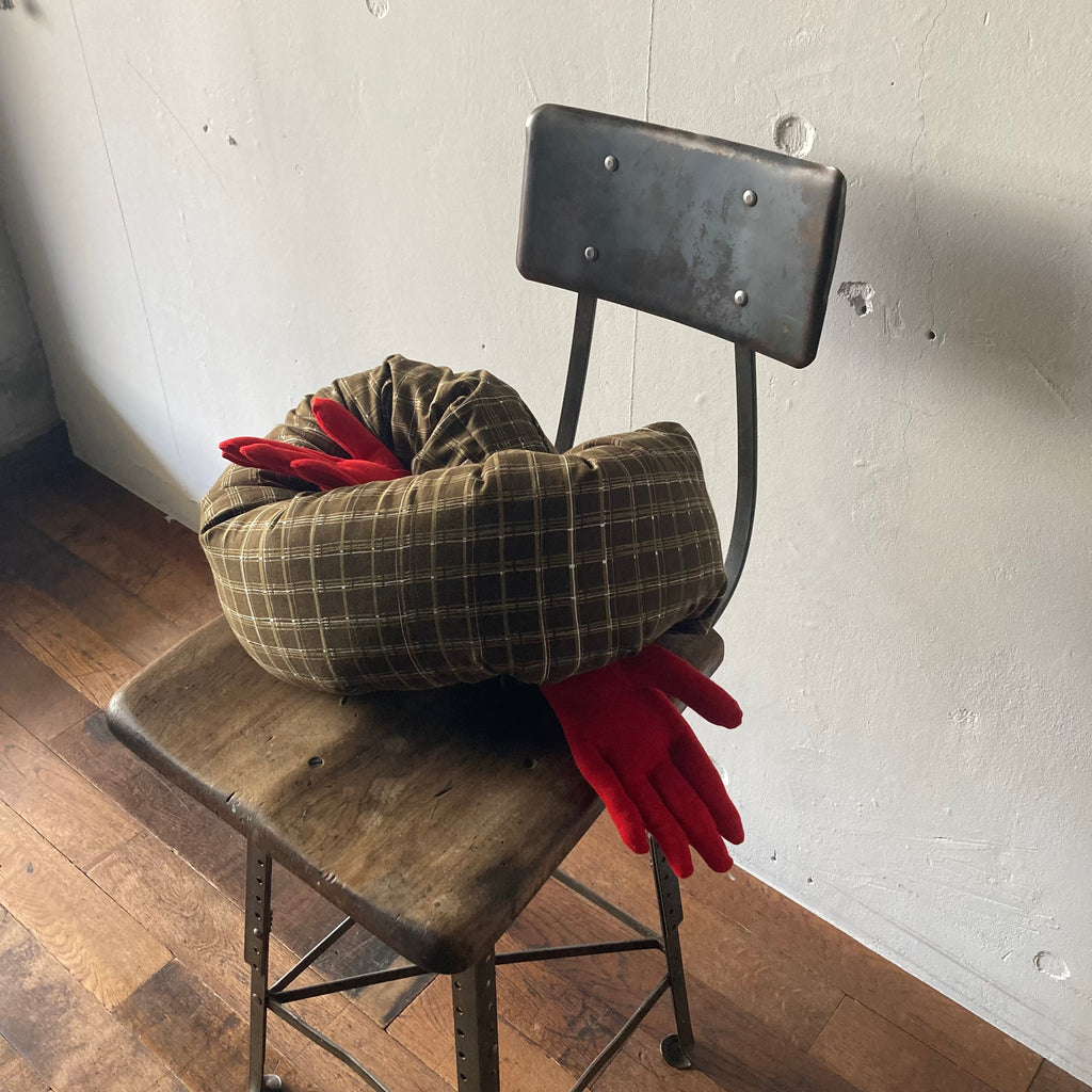 書籍「霧の中の展望台」の表紙ドローイングのダブルアームがクッションになりました!ポスタルコのオリジナルファブリックを使用、中綿が取り外しができるようファスナー付き。ちゃんと袖にボタンも付いていて、細かいところまで抜かりなく作られています。オブジェとしても、抱き枕にも、クルッと巻いて椅子やソファーにも。私はちょっとこれ何ですか?と言いたくなる絶妙なファニーさにすっかりやられました、、、完全受注のお品なのでレアアイテムです。