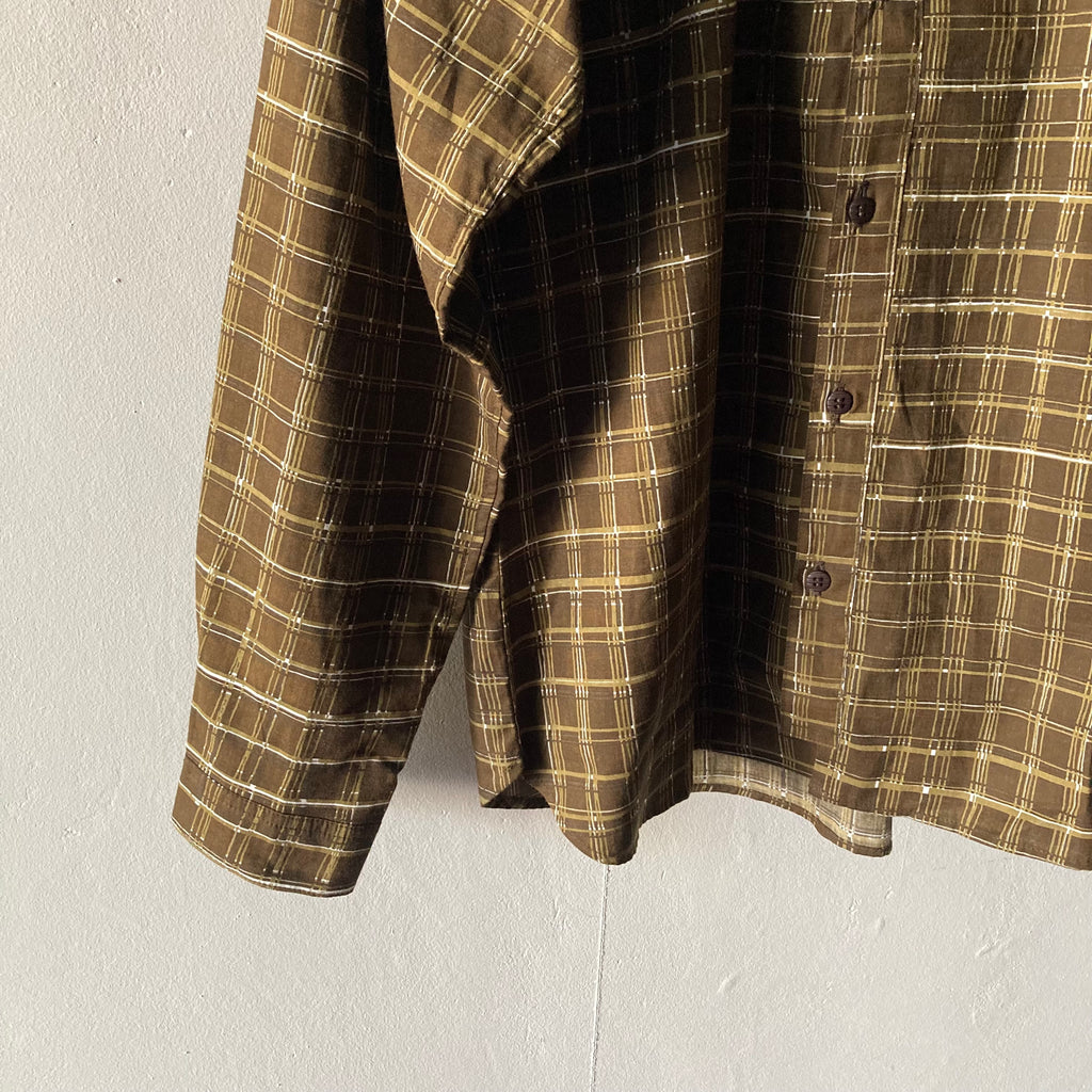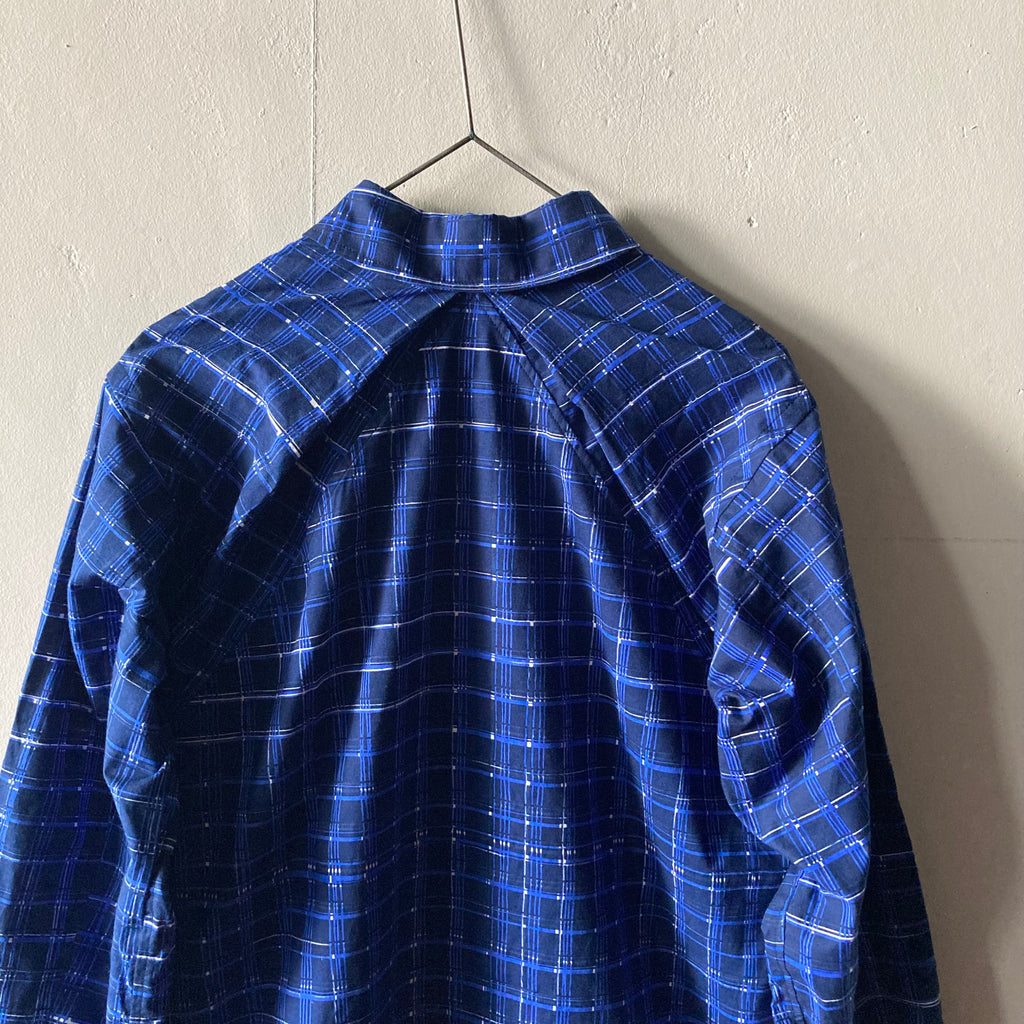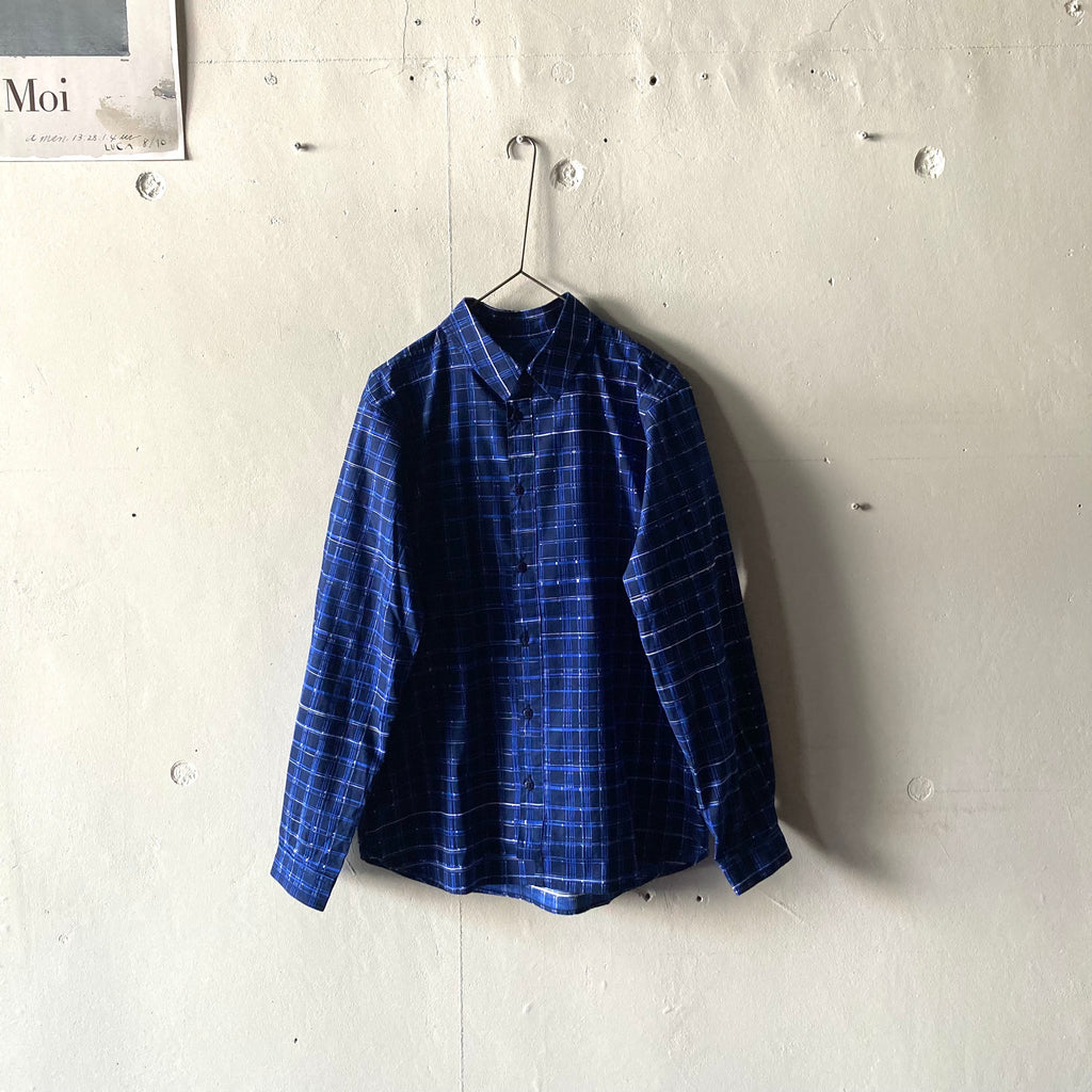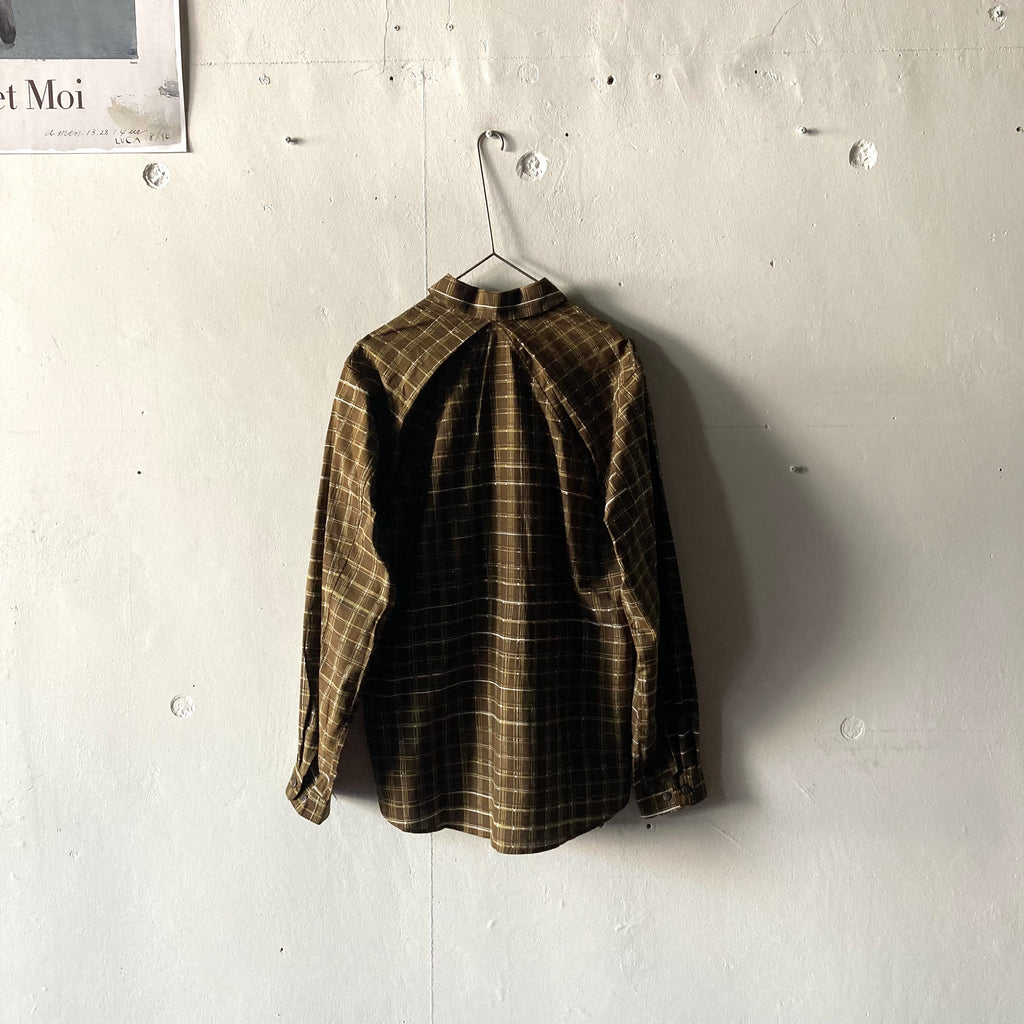 オリジナル柄を手刷りのシルクスクリーンプリントした生地で仕立てたフリーアームシャツです。前回入荷したものより若干細身のシルエット、程よいゆとりがありコンパクトにまとまります。オリジナルのボタンもかわいいんですよね。どちらのお色も着ると顔周りがパッと明るくなり、下手すれば野暮ったくなりがちなチェック柄を絶妙なバランスで仕上げているのはさすがです。